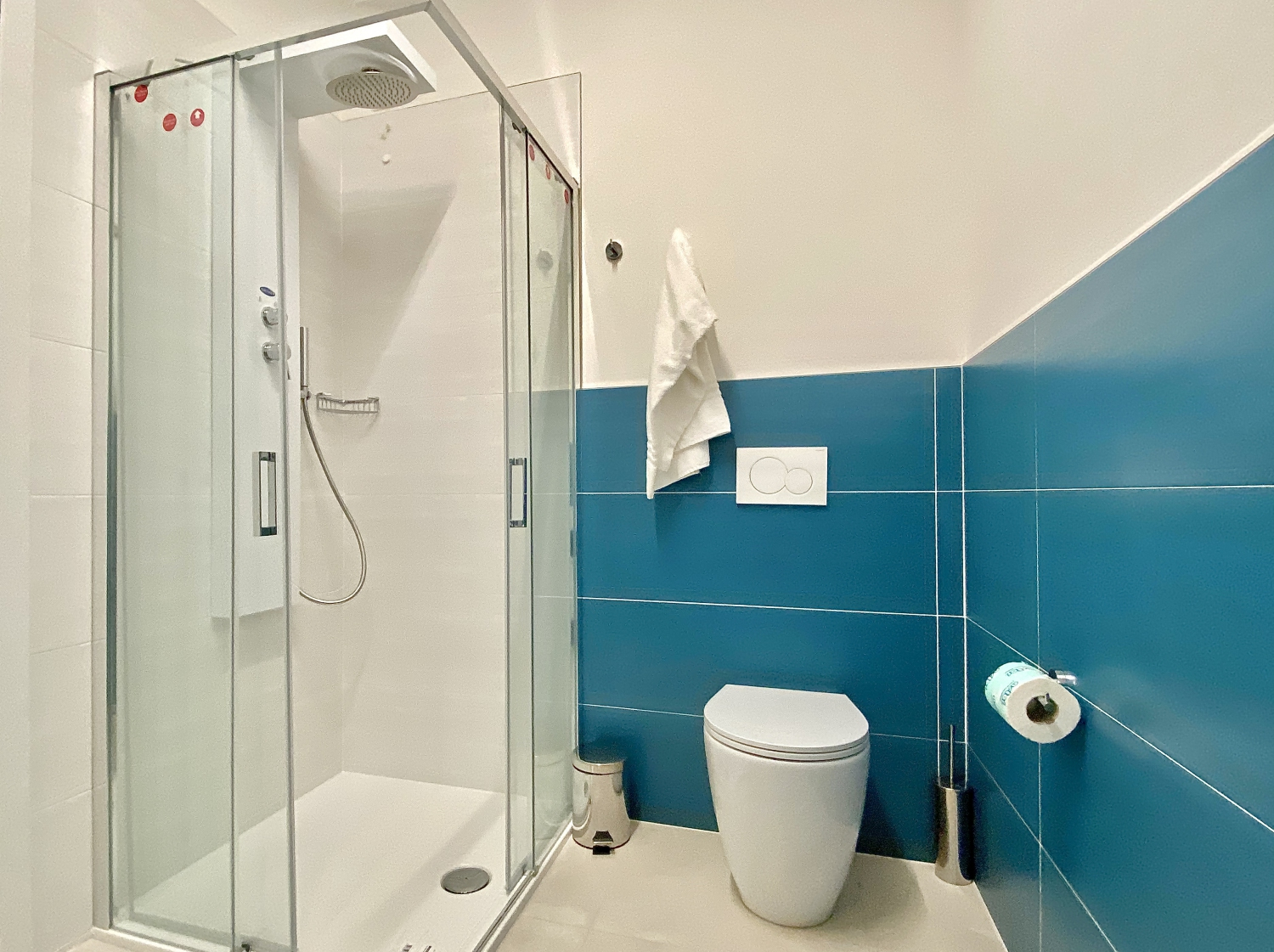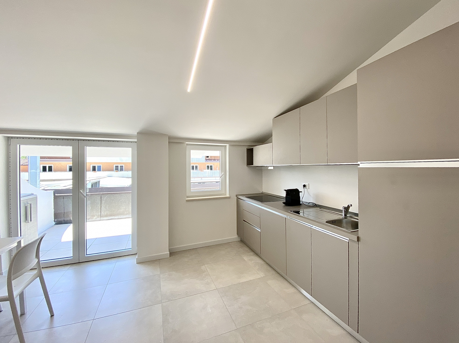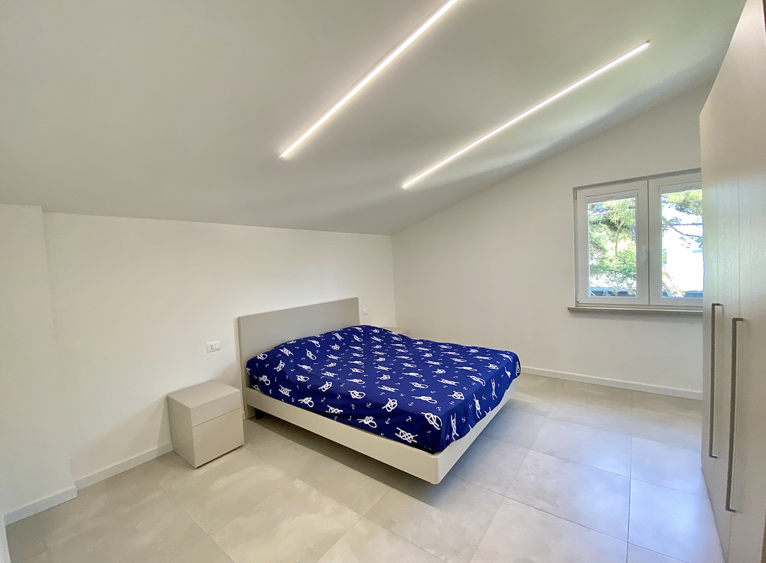 Grande appartamento trilocale di 60 metri quadrati, per massimo 6 posti letto che comprende 2 camere: 1 camera da letto con letto alla francese, 1 grande camera con letto matrimoniale. L’unità e composta da 1 bagno, un grande soggiorno con cucina e divano letto, il tutto con vista panoramica sulla terrazza. Nella cucina è presente una porta finestra che si apre direttamente sulla terrazza solarium di ben 25 metri quadrati, anche in tutte le altre aree dell’appartamento è presente una finestra. Tutte le stanze sono servite da impianto di aria condizionata canalizzato regolabile, nelle giornate fredde oppure nei mesi invernali è possibile usufruire della pompa di calore per il riscaldamento. L’entrata dispone di una porta blindata. In tutte le zone è disponibile la connessione Wi-Fi.