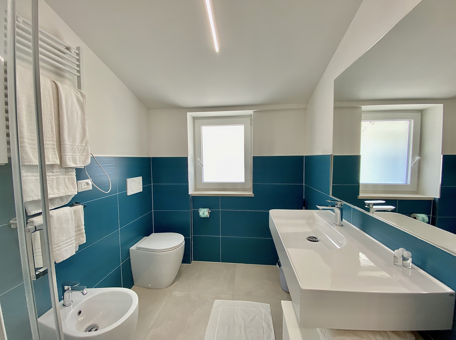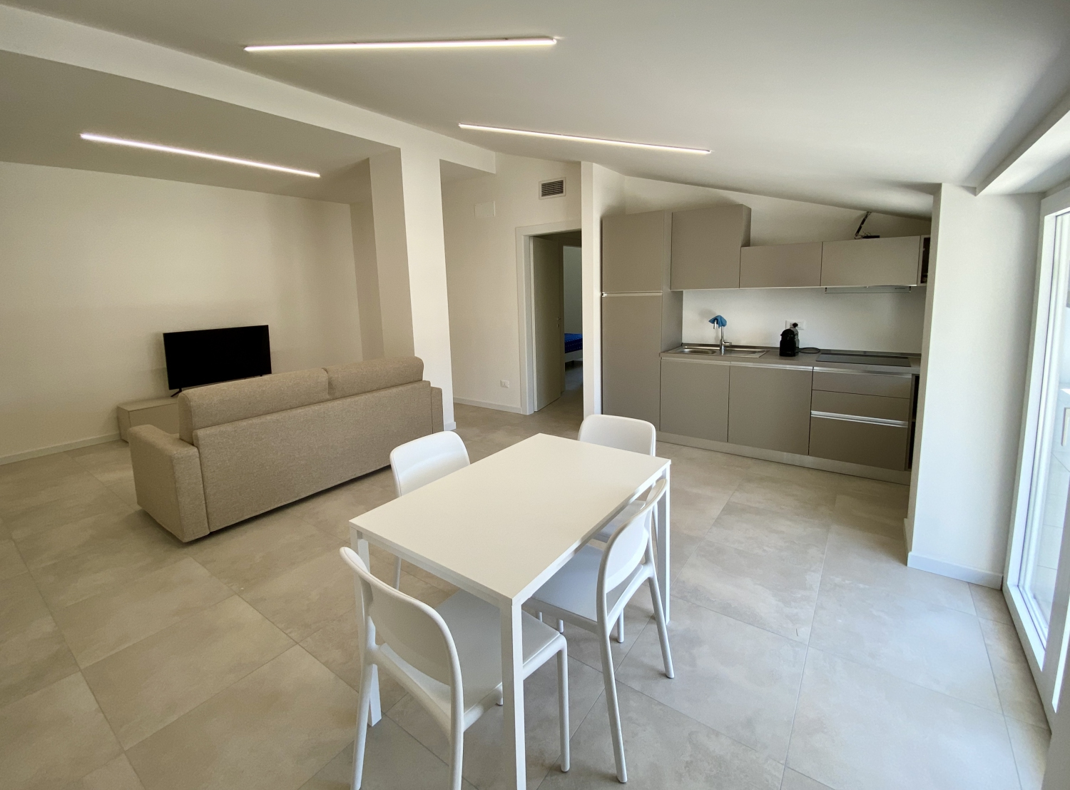 Appartamento di 60 metri quadrati fino ad massimo di 6 persone e dispone di 2 camere da letto: la prima con 1 letto alla francese, la seconda con una grande camera con letto matrimoniale. Il resto della casa è composto da: grande soggiorno con divano letto e tv, cucina con elettrodomestici, bagno con doccia. Tutte le aree dell’appartamento sono servite da aria condizionata centralizzata a flusso continuo regolabile. L’entrata dispone di una porta blindata, per le giornate più fredde oppure per soggiorni invernali è disponibile anche il riscaldamento. In tutte le zone è attiva la connessione wifi.