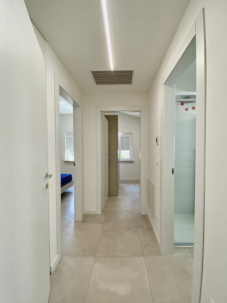 Grande appartamento trilocale di 60 metri quadrati, per massimo 6 posti letto che comprende 2 camere: 1 camera da letto con letto alla francese, 1 grande camera con letto matrimoniale. L’unità e composta da 1 bagno, un grande soggiorno con cucina e divano letto, il tutto con vista panoramica sulla terrazza. Nella cucina è presente una porta finestra che si apre direttamente sulla terrazza solarium di ben 25 metri quadrati, anche in tutte le altre aree dell’appartamento è presente una finestra. Tutte le stanze sono servite da impianto di aria condizionata canalizzato regolabile, nelle giornate fredde oppure nei mesi invernali è possibile usufruire della pompa di calore per il riscaldamento. L’entrata dispone di una porta blindata. In tutte le zone è disponibile la connessione Wi-Fi.